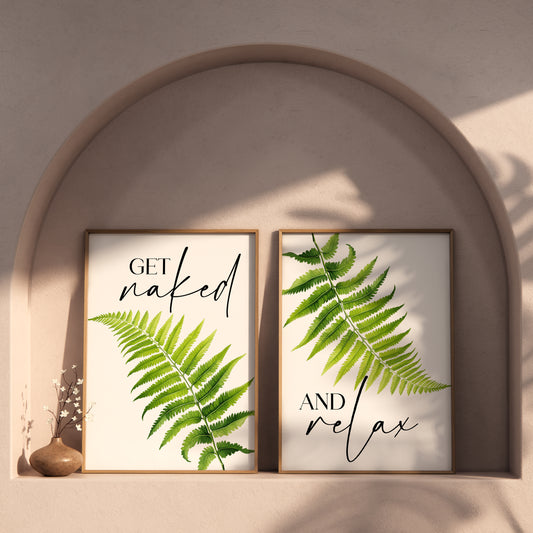 Get Naked and Relax Fern Bathroom Print | Set of 2