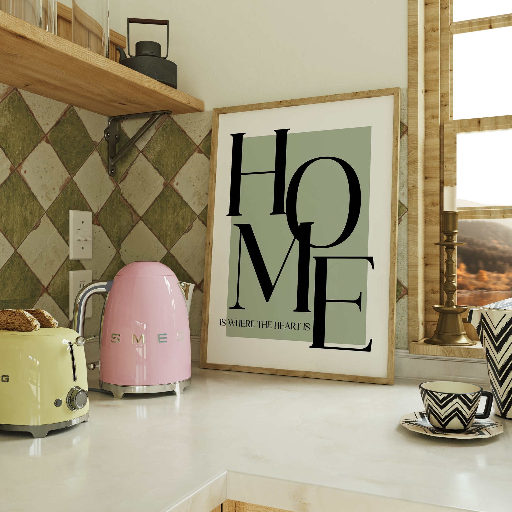 A typography print illustrating the quote 'Home is where the heart is'. This print would make a great focal point to a hallway or living room and with its range of background colours to choose from, will suit any home decor.