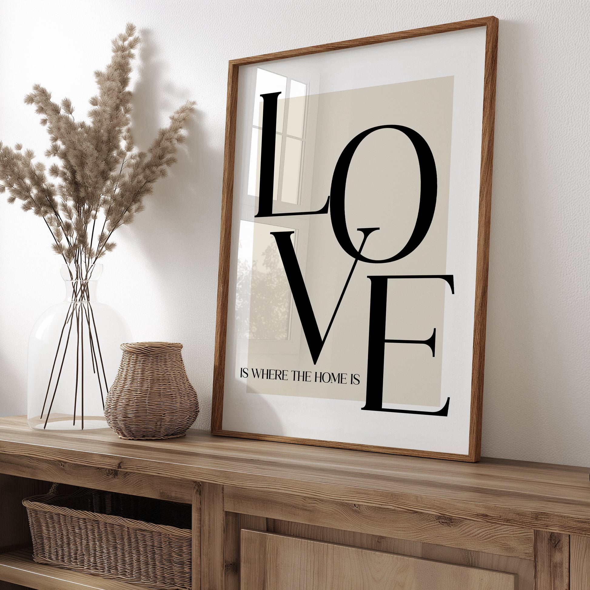 A typography print illustrating the quote 'Love is where the home is'. This print would make a great focal point to a hallway or living room and with its range of background colours to choose from, will suit any home decor.