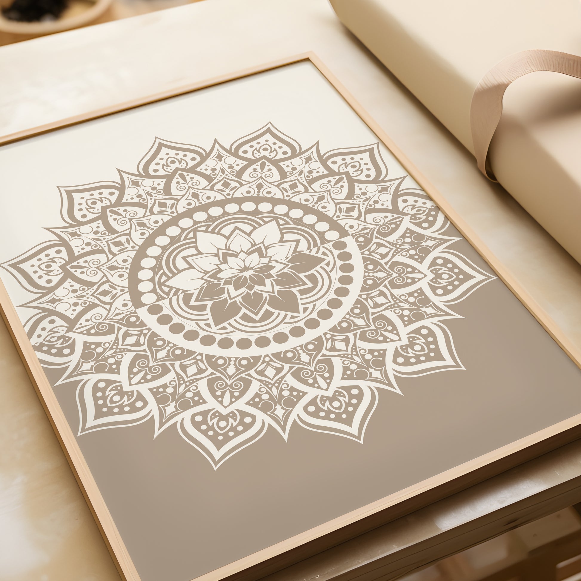 Create a calm, grounded atmosphere with this beautifully detailed neutral mandala wall art. Designed in soft beige and warm taupe tones, this floral-inspired mandala brings balance, texture, and subtle elegance to any space.