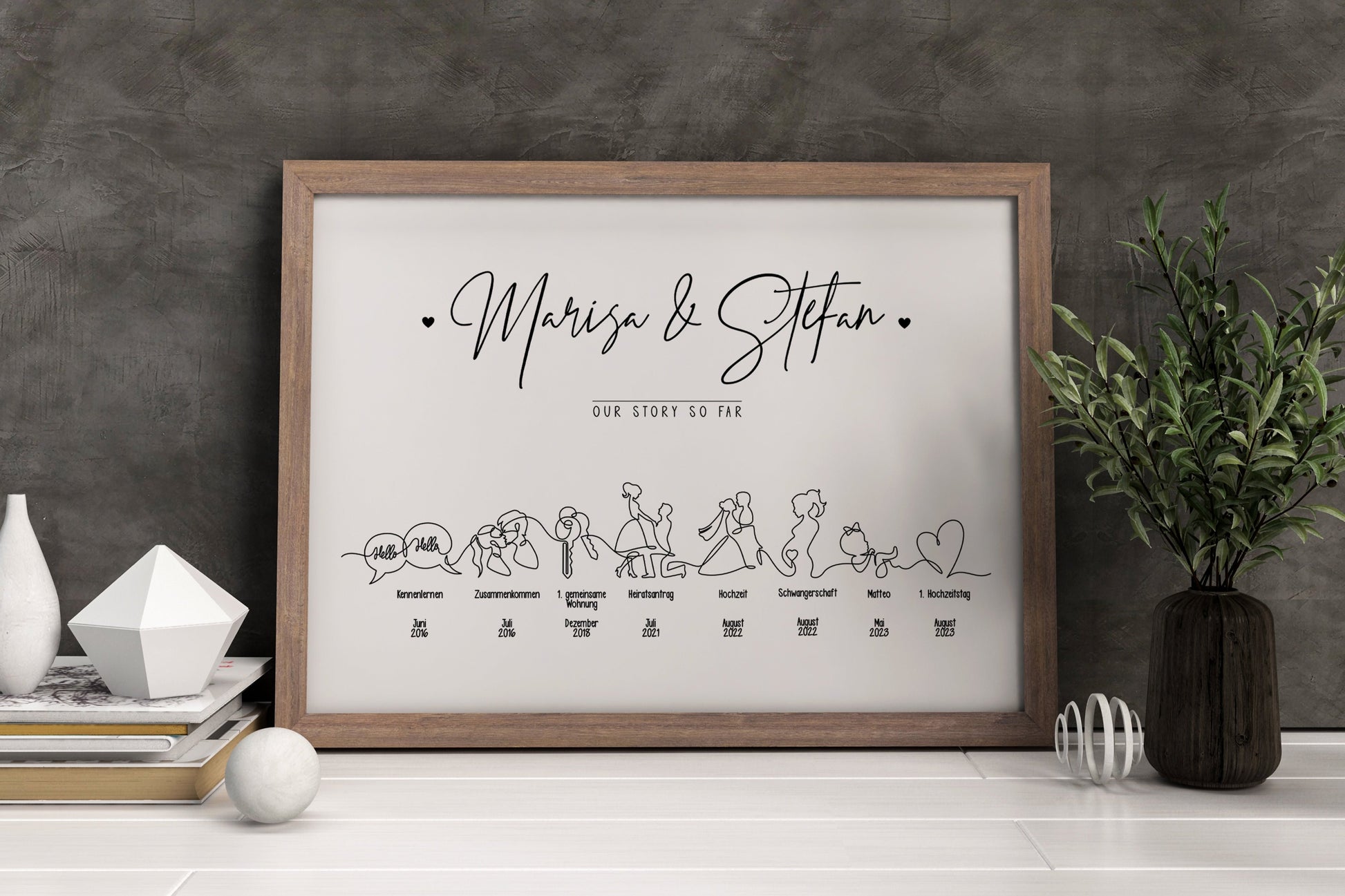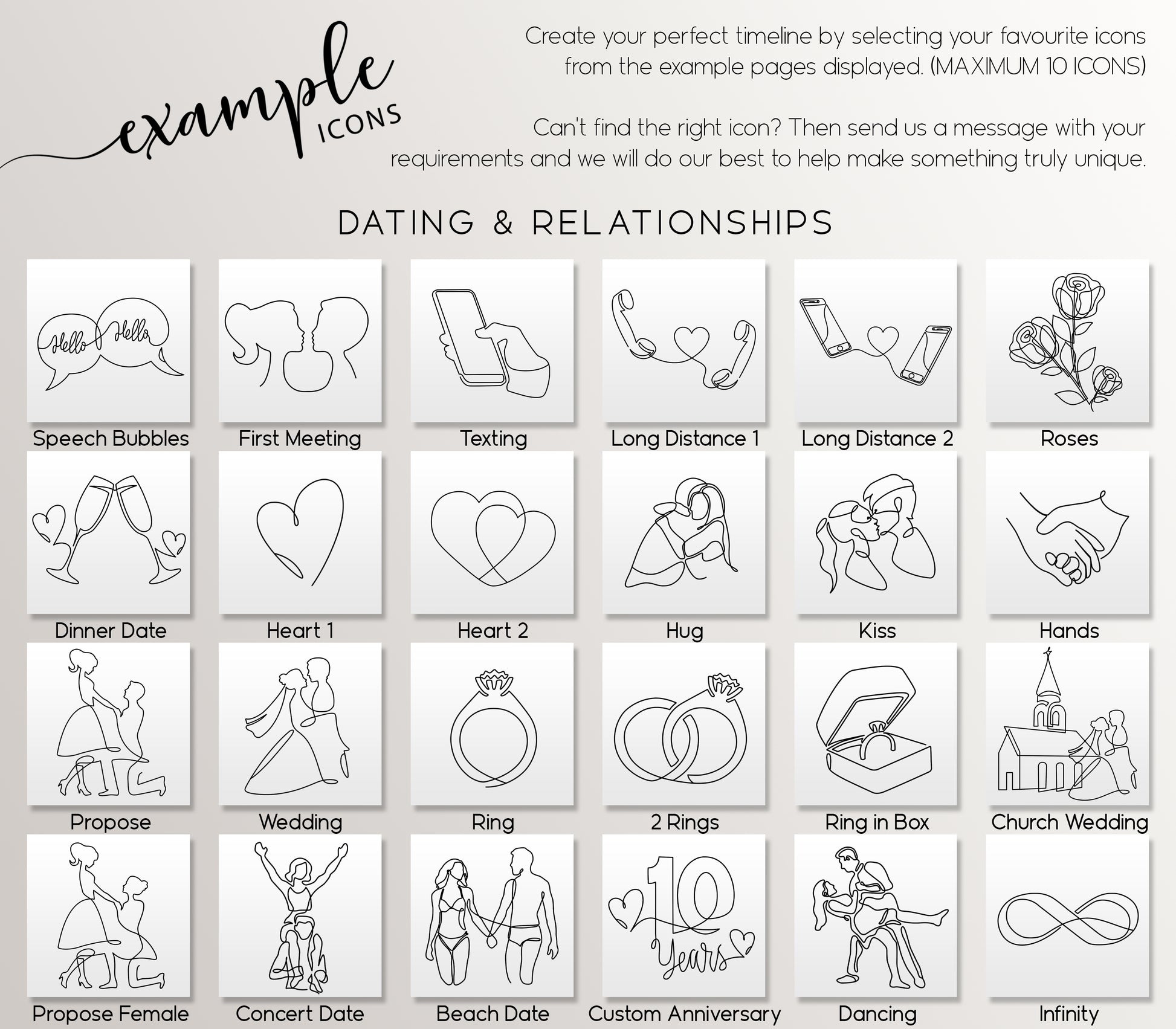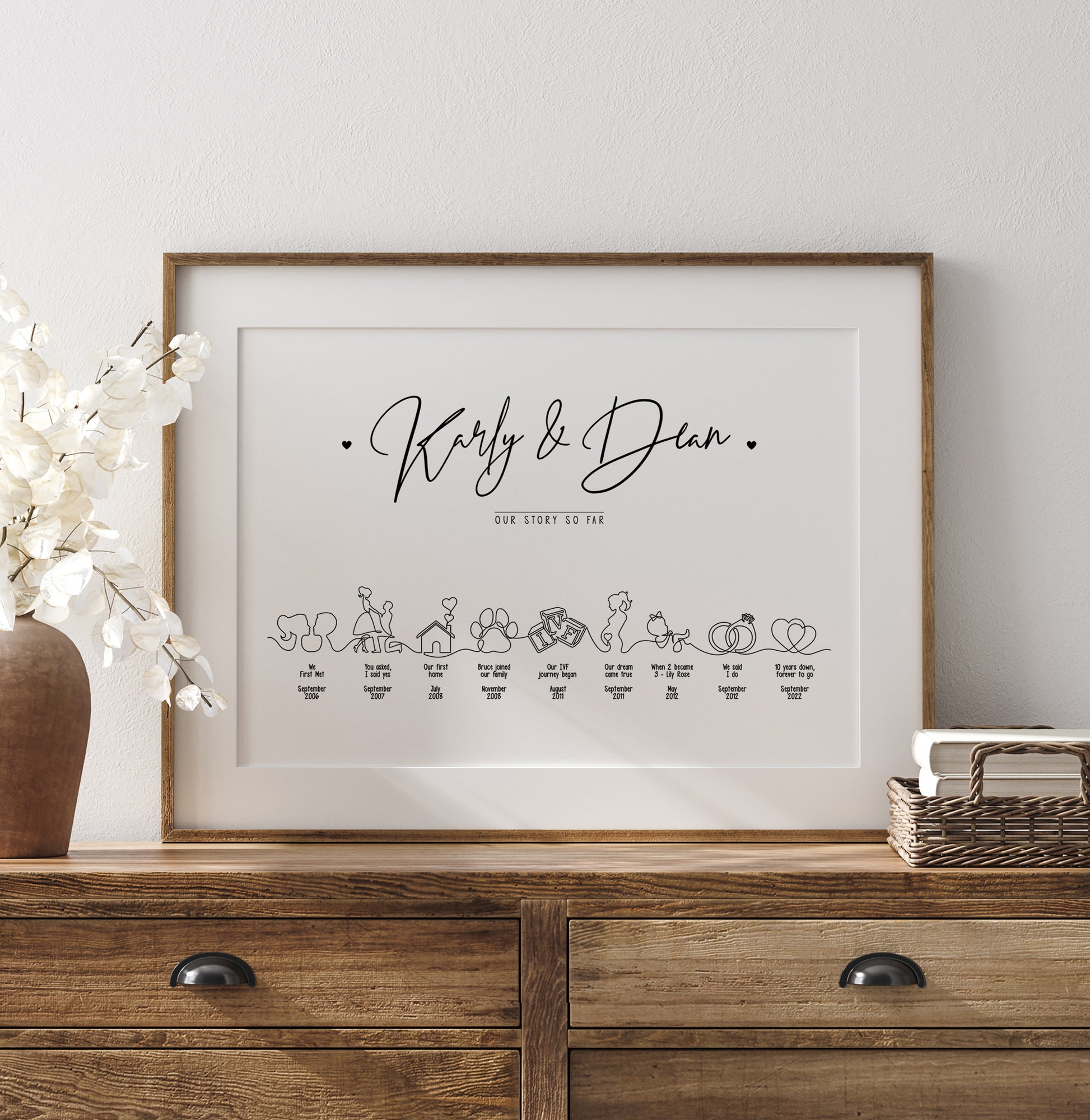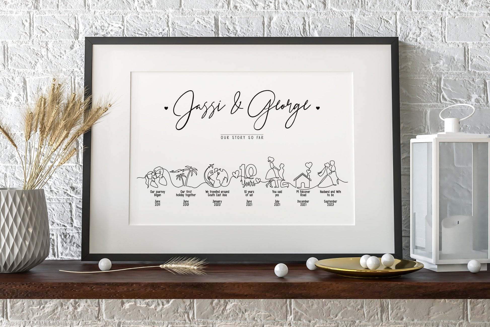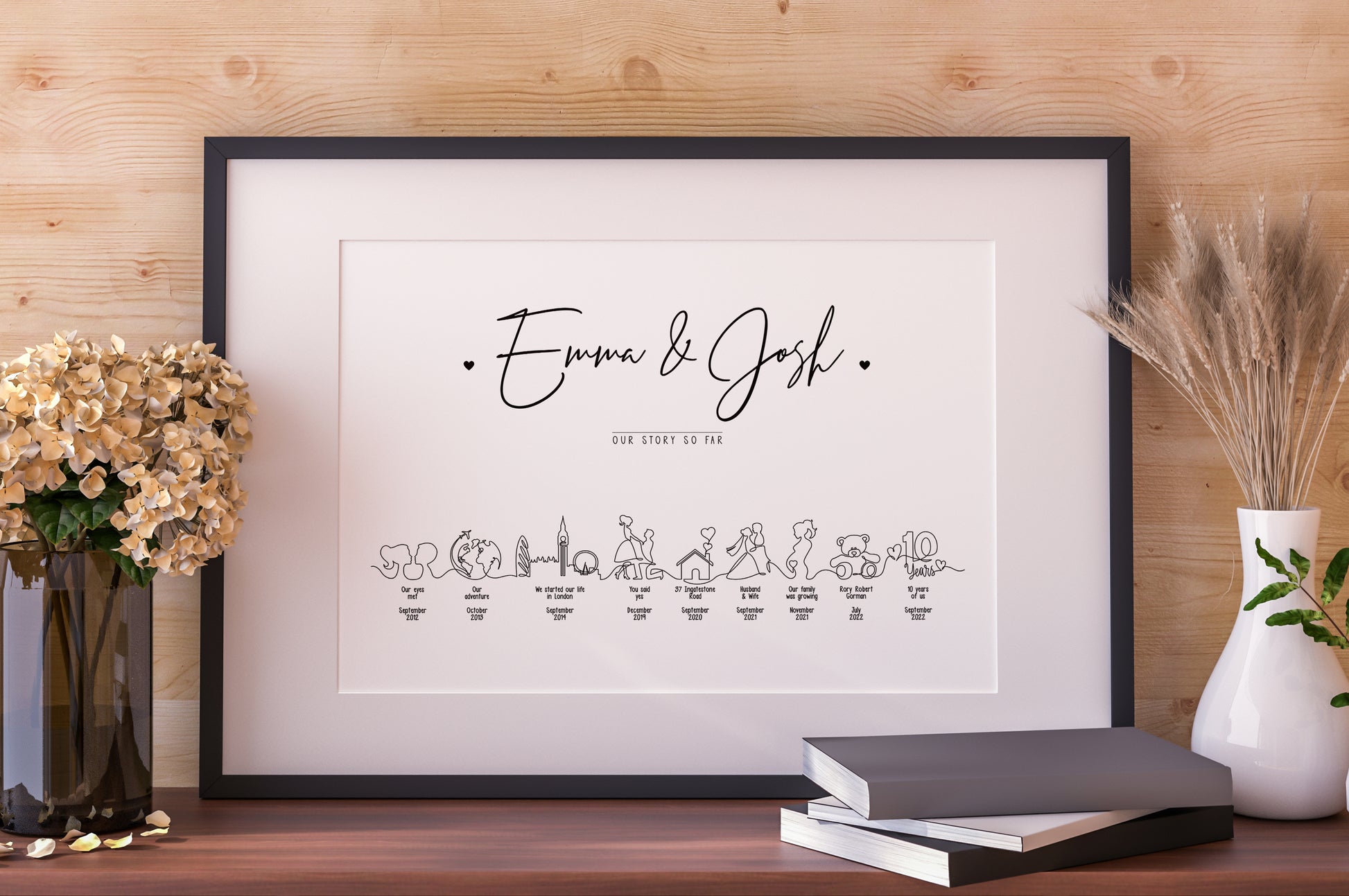 Personalise your own relationship timeline with your most memorable and valued special moments. Choose from our wide range of illustrations designed to let you tell your perfect love story for the best personalised gift.