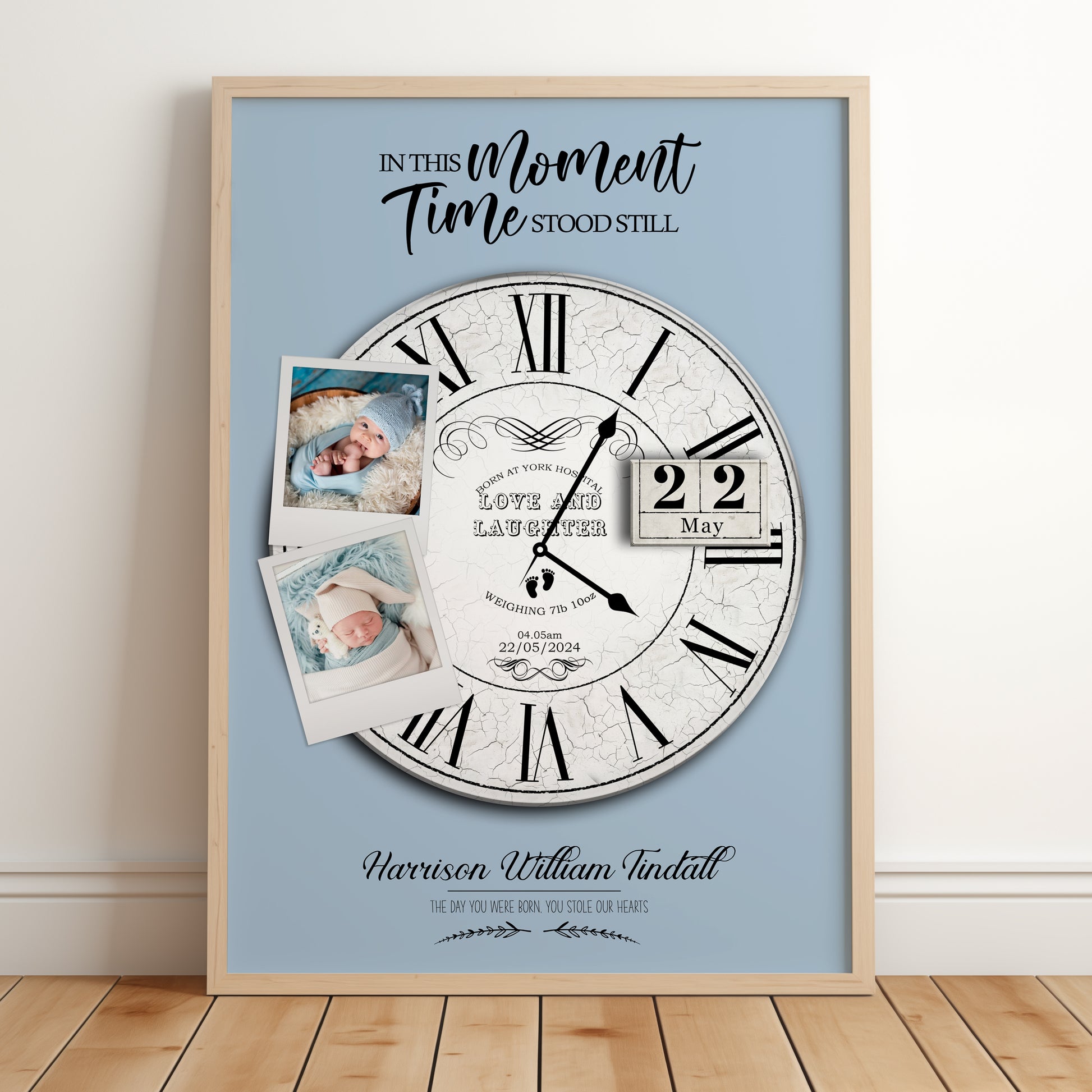 Personalised Birth Stats Clock, In This Moment Time Stood Still | MORE COLOURS