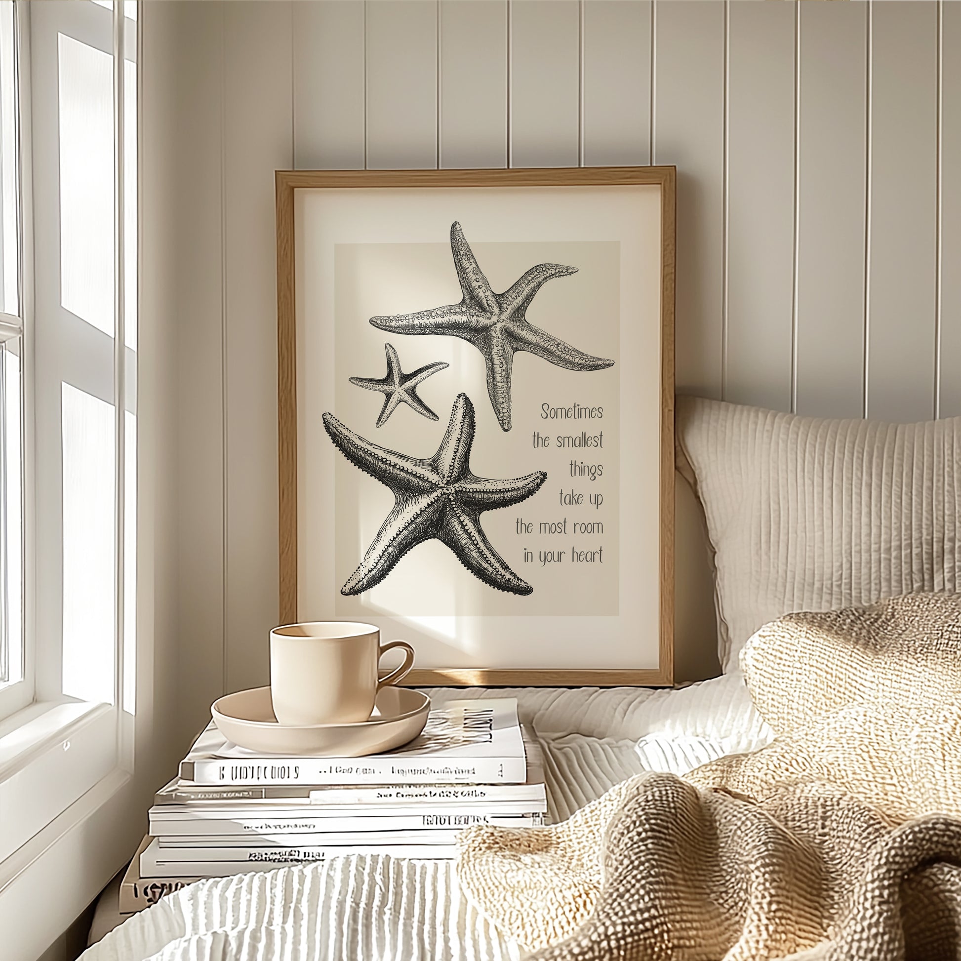 Coastal starfish wall art with an inspirational quote. A soft, beach-inspired poster perfect for ocean lovers, nursery décor, or meaningful gifts.